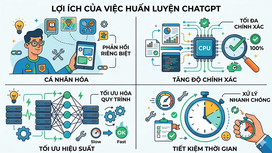 Việc tối ưu cách tương tác với AI mang lại nhiều giá trị thiết thực trong học tập và công việc. Thay vì chỉ sử dụng các câu lệnh mặc định, hiểu rõ huấn luyện ChatGPT như thế nào sẽ giúp bạn khai thác tối đa sức mạnh của AI thông qua các lợi ích sau: