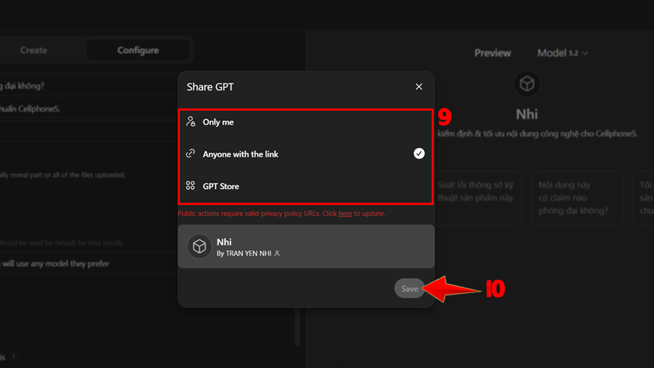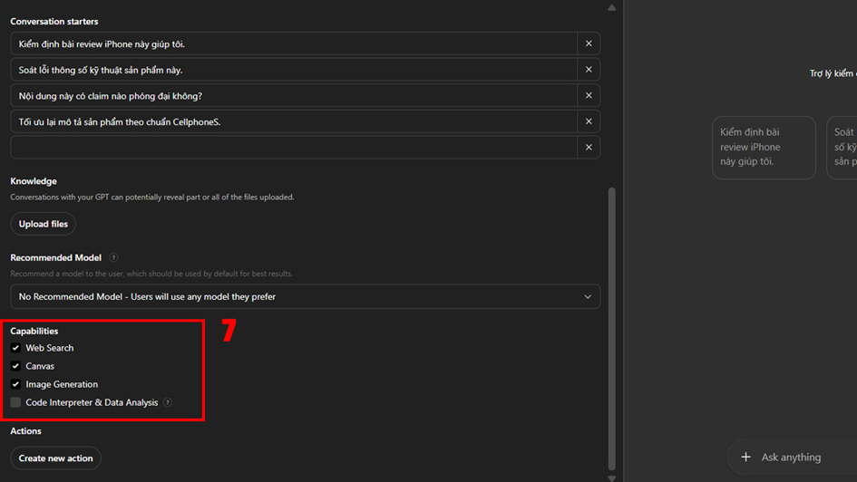 • Sử dụng mục Instructions để quy định rõ những gì My GPTs “được phép” và “không được phép” trả lời nhằm tránh rò rỉ chính sách nội bộ.