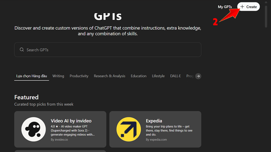 Tạo Custom GPTs giúp bạn xây dựng một phiên bản ChatGPT hoạt động theo mục tiêu riêng như viết SEO, hỗ trợ khách hàng hay xử lý tài liệu nội bộ. Cách huấn luyện ChatGPT như sau: