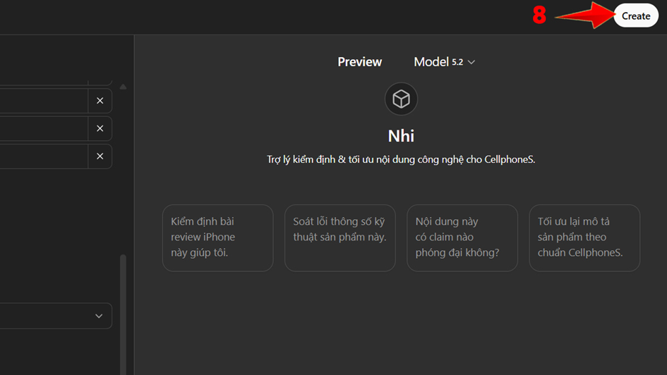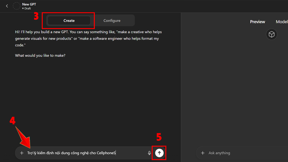 • Tại tab Create: Nhập mô tả mục tiêu của GPTs